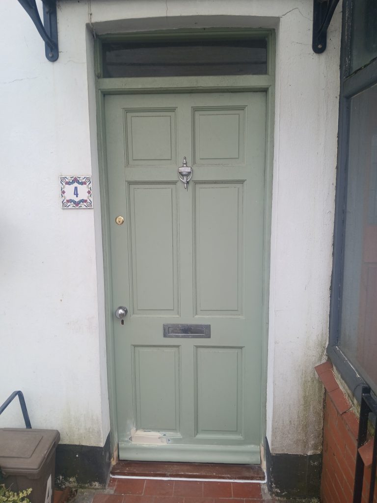 This customer initially wanted a new front door, but when I measured it, we discovered it was an unusual size, so we agreed that I would work on refurbishing the frame and door to save them money whilst still achieving a good outcome.